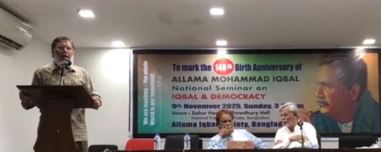 এ মহান কবির ১৪৮তম জন্ম বার্ষিকী উপলক্ষে আল্লামা ইকবাল সংসদের উদ্যোগে আজ রবিবার বিকালে জাতীয় প্রেসক্লাবের জহুর হোসেন চৌধুরী হলে “ইকবাল ও গণতন্ত্র” শীর্ষক সেমিনার অনুষ্ঠিত হয়।