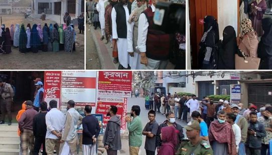 ভোরের আলো ফোটার আগেই দেশের বিভিন্ন প্রান্তে ভোটকেন্দ্রগুলোর সামনে জমতে শুরু করে মানুষের ভিড়। সকাল বাড়ার সঙ্গে সঙ্গে সেই ভিড় পরিণত হয় দীর্ঘ সারিতে। নারী, পুরুষ, তরুণ, প্রবীণ— সব বয়সী ভোটারদের উপস্থিতিতে অনেক কেন্দ্রেই তৈরি হয় উৎসবমুখর পরিবেশ।