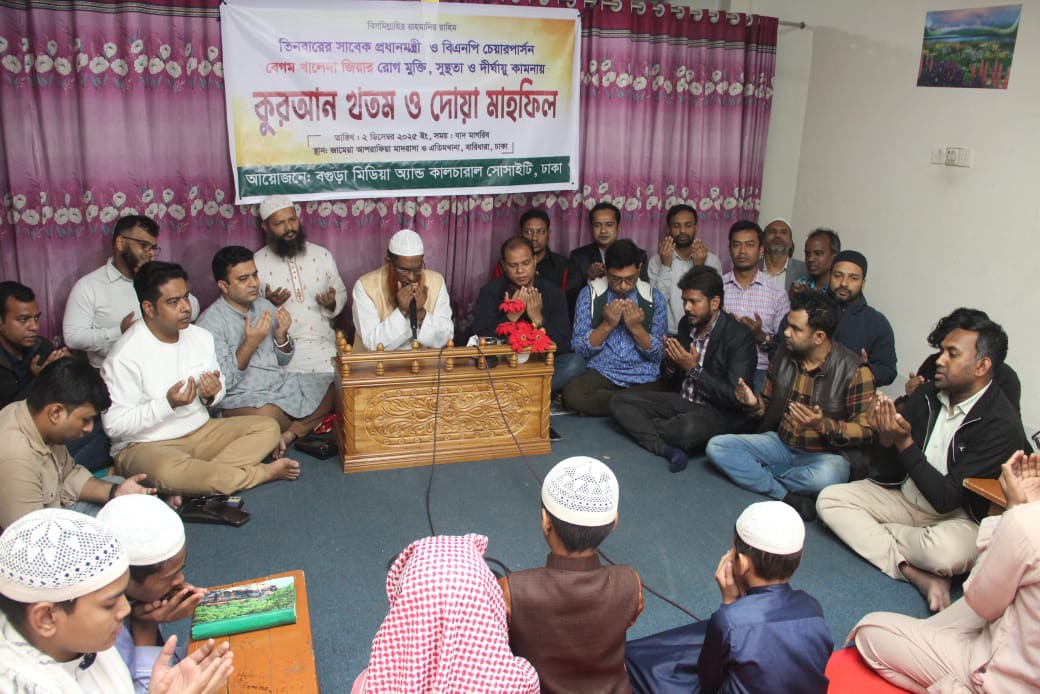 খালেদা জিয়ার সুস্থতা কামনায় বগুড়া মিডিয়া এন্ড কালচারাল সোসাইটির কোরআন খতম ও দোয়া মাহফিল অনুষ্ঠিত