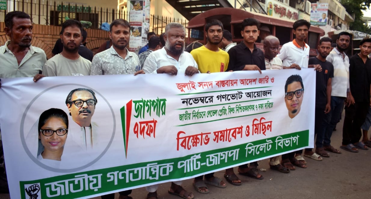 জাতীয় গণতান্ত্রিক পার্টি জাগপা সিলেট বিভাগীয় কমিটির উদ্যোগে জুলাই সনদ বাস্তবায়ন আদেশ জারি, নভেম্বরে গণভোট আয়োজন ও জাতীয় নির্বাচনে লেভেল প্লেয়িং ফিল্ড নিশ্চিতকরণ সহ ৭ দফা দাবিতে এক বিক্ষোভ সমাবেশ ও মিছিল অনুষ্ঠিত হয়েছে।