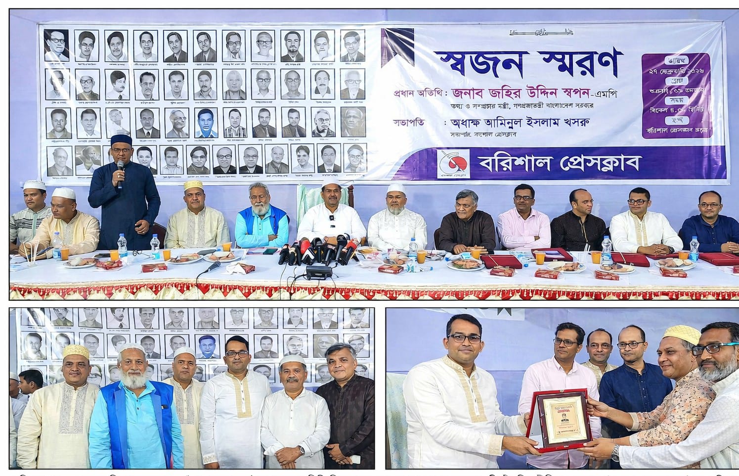 বরিশাল প্রেসক্লাবের সভাপতি অধ্যক্ষ আমিনুল ইসলাম খসরু–এর সভাপতিত্বে অনুষ্ঠানে আরও উপস্থিত ছিলেন বরিশাল রেঞ্জের ডিআইজি মঞ্জুর মোর্শেদ আলম, বরিশাল মেট্রোপলিটন পুলিশের কমিশনার মো. শফিকুল ইসলাম, জেলা প্রশাসক মো. খায়রুল আলম সুমন, পুলিশ সুপার ফারজানা ইসলাম, পিআইডি বরিশালের উপপ্রধান তথ্য অফিসার মোছাম্মত আফরোজা নাইচ রিমা, বরিশাল প্রেসক্লাবের সাধারণ সম্পাদক এস এম জাকির হোসেনসহ প্রেসক্লাবের সদস্য, বিভিন্ন সাংবাদিক সংগঠনের নেতৃবৃন্দ, সিনিয়র সাংবাদিক ও গণমাধ্যমকর্মীরা উপস্থিত ছিলেন।