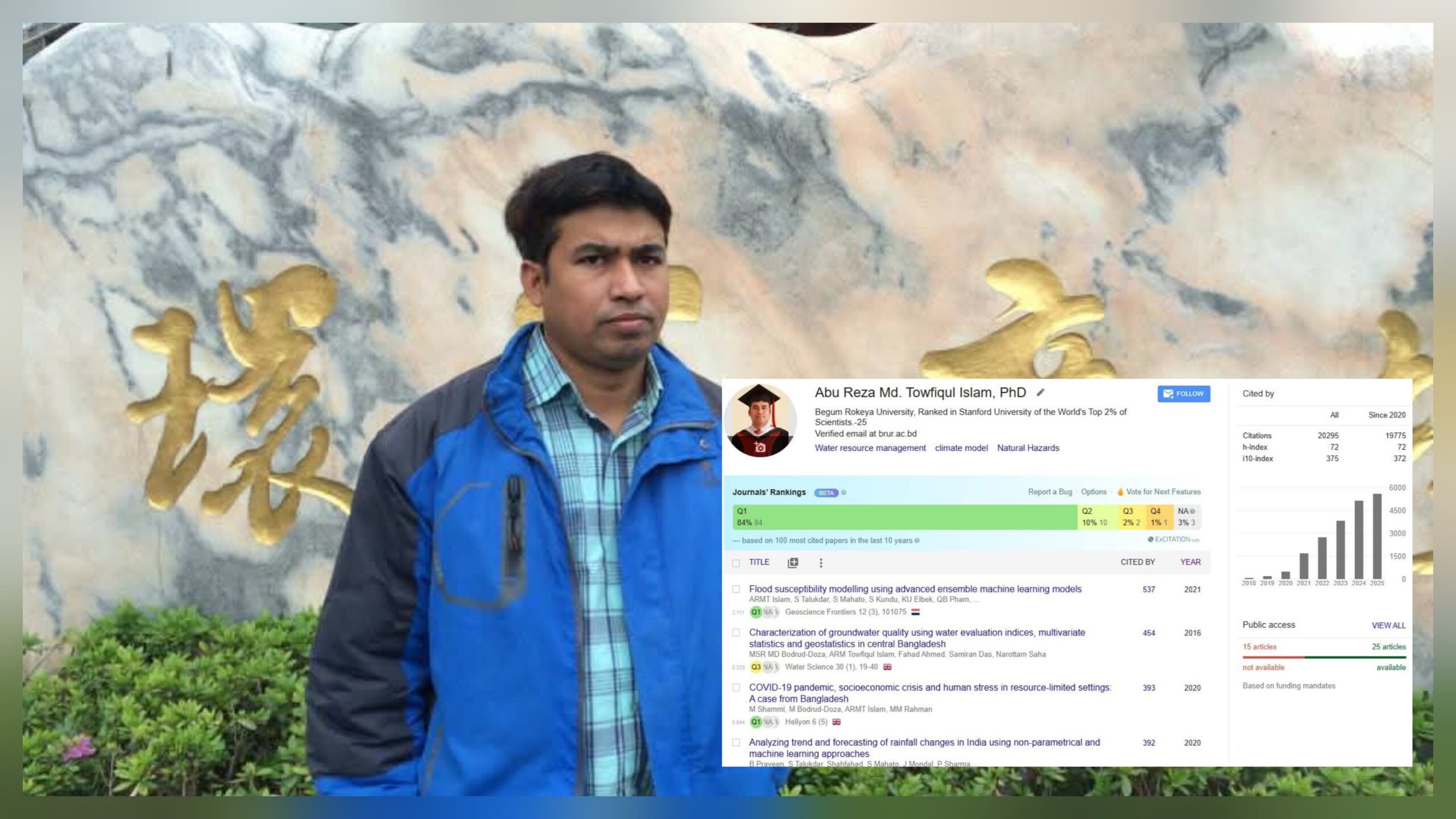 গুগল স্কলারে ২০,০০০-এর বেশি সাইটেশন অর্জন করে বৈশ্বিক গবেষণা অঙ্গনে নতুন মাইলফলক সৃষ্টি করেছেন বেগম রোকেয়া বিশ্ববিদ্যালয়ের দুর্যোগ বিজ্ঞান ও ব্যবস্থাপনা (ডিএসএম) বিভাগের শিক্ষক ও গবেষক ড. আবু রেজা মো. তৌফিকুল ইসলাম।