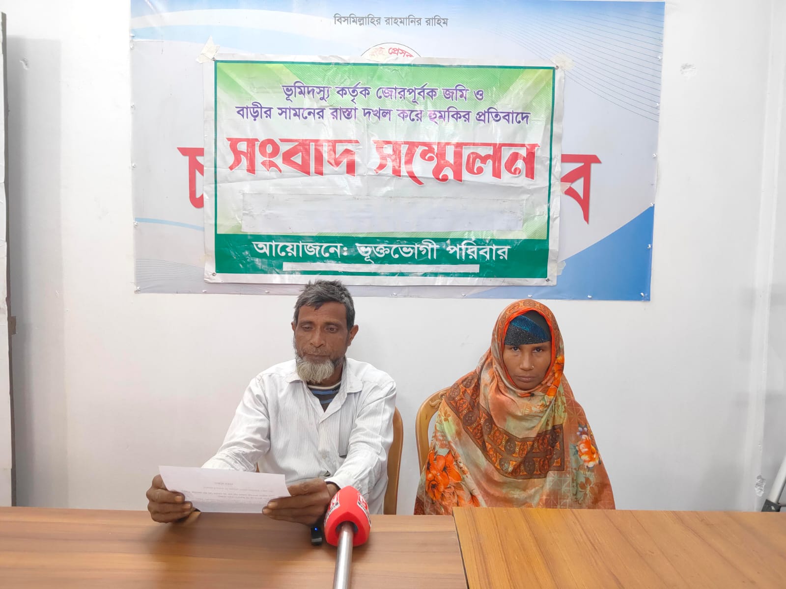সংবাদ সম্মেলনে আশরাফুল হক জানান, মামলায় বিবাদীগনের সাথে জমি নিয়ে বিরোধ দীর্ঘদিনের। উল্লেখিত জমির আর.এস দাগ নং ১৩১৯,১৩৪৭,১৩৪৮,১৩৪৯ এর মধ্যে প্রায় দশমিক ২২৯৪ একর জমিজমা নিয়ে শামসুজ্জোহা, সজীব সহ তাদের ভূমি দস্য বাহিনী বিরোধ সৃষ্টি করলে গত ৩১ অক্টোবর ২০২৩ তারিখ আদালতে বাটোয়ারা মামলা করা হয়। এতে ক্ষুব্ধ হয়ে উঠেন অপরপক্ষ শামসুজোহা সহ তার দলবল। পরবর্তীতে আশরাফুল হকের পরিবারসহ তারা বাড়ি ছেড়ে নিজেদের আত্মীয় স্বজনদের বাসায় দিন কাটিয়েছেন। এ ঘটনায় তারা থানায় মামলা করলেও পুলিশ মামলা নেয়নি বলে দাবি করেন তারা। পরে তারা আদালতে মামলা করতে বাধ্য হন। এখনও আদালতে মামলা বিচারাধীন রয়েছে।