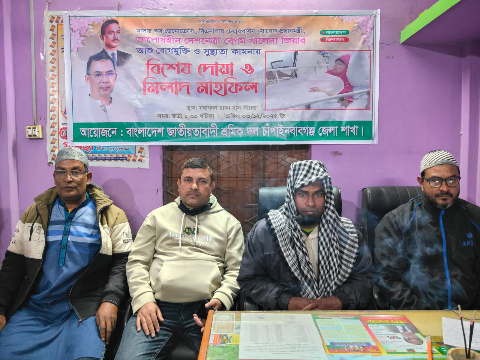 চাঁপাইনবাবগঞ্জ শ্রমিক দলের উদ্যোগে বেগম খালেদা জিয়ার রোগমুক্তি ও সুস্থতার জন্য দোয়া মাহফিল