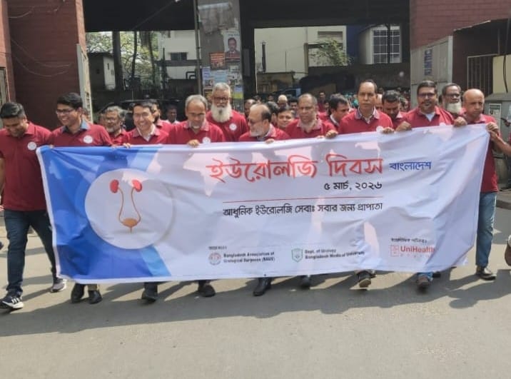 জাতীয় ইউরোলজি দিবস ২০২৬ উপলক্ষে আয়োজিত বর্ণাঢ্য র্যালি ও সচেতনতামূলক লিফলেট বিতরণ কর্মসূচির মাধ্যমে সারা দেশে দিবসটি যথাযোগ্য মর্যাদায় পালিত হয়েছে। এ উপলক্ষে “অধুনিক ইউরোলজি সেবা: সবার জন্য প্রাপ্যতা” প্রতিপাদ্য সামনে রেখে বাংলাদেশ মেডিকেল বিশ্ববিদ্যালয়ে বাংলাদেশ এসোসিয়েশন অব ইউরোলজিকাল সার্জনস আয়োজিত র্যালির উদ্বোধন করেন প্রধান অতিথি হিসেবে বাংলাদেশ মেডিকেল বিশ্ববিদ্যালয়ের ইউরোলজি বিভাগের সহযোগী অধ্যাপক ও বিএনপির স্বাস্থ্যবিষয়ক সম্পাদক ডা. মো. রফিকূল ইসলাম।