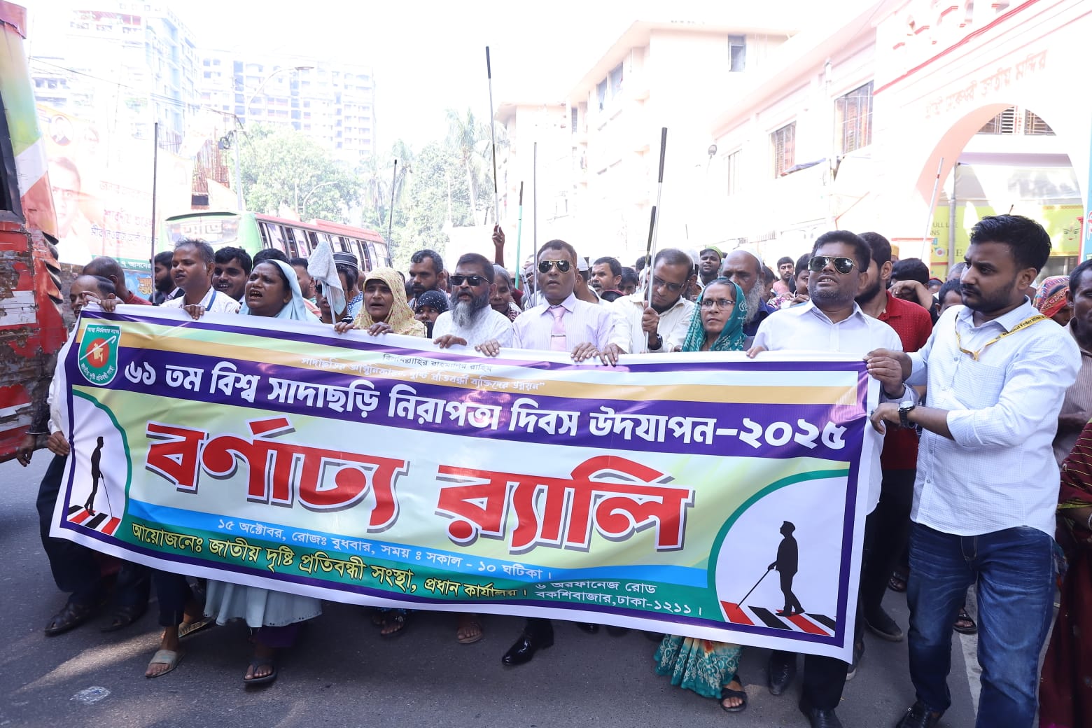“সাদাছড়ির আধুনিকায়ন, দৃষ্টি প্রতিবন্ধী ব্যক্তির উন্নয়ন”এমন প্রতিপাদ্যকে সঙ্গে নিয়ে বিশ্ব সাদাছড়ি নিরাপত্তা দিবস উদযাপন উপলক্ষে বুধবার (১৫ অক্টোবর) ৬ অরফানেজ রোড বকশিবাজার জাতীয় দৃষ্টি প্রতিবন্ধী সংস্থা প্রধান কার্যালয়,৬১তম বিশ্ব সাদাছড়ি নিরাপত্তা দিবস উপলক্ষে র্যালি ও আলোচনা সভা অনুষ্ঠিত হয়েছে।