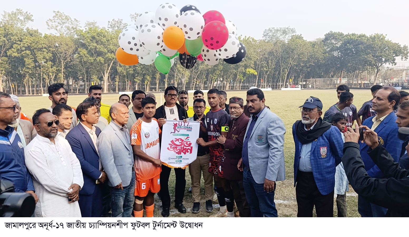 জামালপুরে শুরু হয়েছে অনূর্ধ-১৭ জাতীয় চ্যাম্পিয়নশীপ ফুটবল টুর্নামেন্ট-২০২৫। শুক্রবার (১৬ জানুয়ারী) বিকেলে শহরের জিলা স্কুল মাঠে জামালপুর জেলা ফুটবল এসোসিয়েশনের সহযোগিতায় বাংলাদেশ ফুটবল ফেডারেশন এই টুর্নামেন্টের উদ্বোধনী অনুষ্ঠান ও উদ্বোধনী ম্যাচের আয়োজন করে।