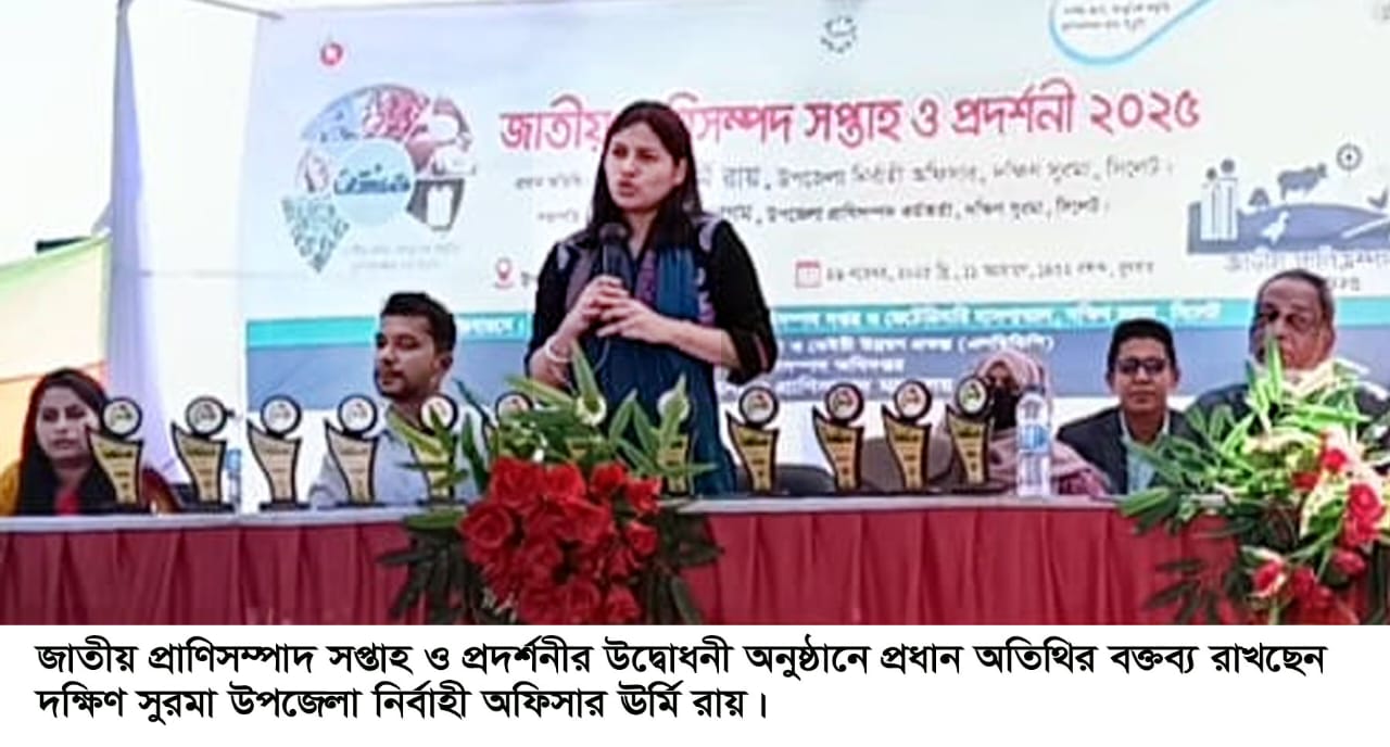 “দেশীয় জাত, আধুনিক প্রযুক্তি, প্রাণী সম্পদে হবে উন্নতি” আমিষে শক্তি, আমিষেই মুক্তি” এ প্রতিপাদ্যেকে সামনে রেখে দক্ষিণ সুরমা উপজেলা প্রশাসন ও উপজেলা প্রাণিসম্পদ দপ্তর ও ভেটেরিনারি হাসপাতাল এর যৌথ উদ্যোগে জাতীয় প্রাণিসম্পদ সপ্তাহ ও প্রদর্শনীর উদ্বোধনী অনুষ্ঠান গতকাল ২৬ নভেম্বর বুধবার উপজেলা পরিষদ প্রাঙ্গণে অনুষ্ঠিত হয়।