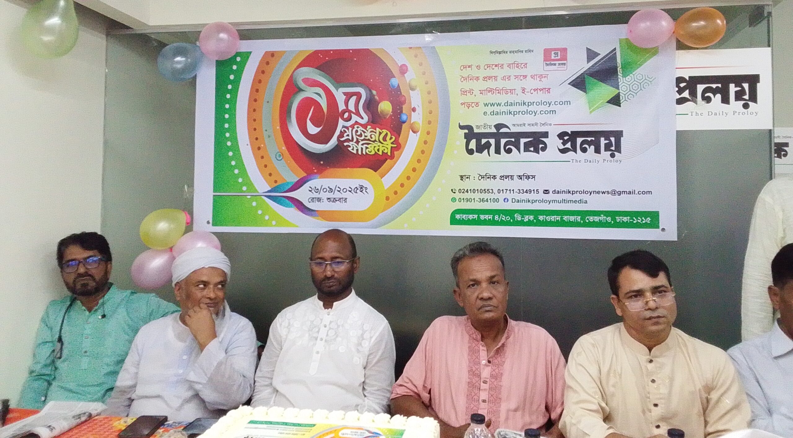 দৈনিক প্রলয় পত্রিকার ১ম প্রতিষ্ঠাবার্ষিকী উপলক্ষে আজ বিকাল ৫ ঘটিকার সময় পত্রিকাটির হল রুমে কেক কাটার মধ্যে দিয়ে পত্রিকাটির সফলতা কামলনার উদ্দেশ্য এক মত বিনিময় ও আলোচনা সভা অনুষ্ঠিত হয়েছে।