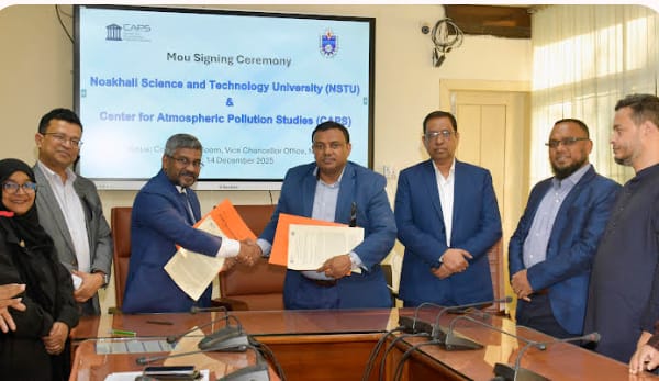 নোয়াখালী বিজ্ঞান ও প্রযুুক্তি বিশ্ববিদ্যালয়ের (নোবিপ্রবি) সঙ্গে সেন্টার ফর অ্যাটমোস্ফিয়ারিক পলিউশন স্টাডিজের (ক্যাপস) সমঝোতা স্মারক (MoU) স্বাক্ষরিত হয়েছে। বায়ুদূষণ রোধ, পরিবেশ সংরক্ষণ ও একাডেমিক গবেষণার মানোন্নয়নের লক্ষ্যে আজ রোববার (১৪ ডিসেম্বর ২০২৫) উপাচার্যের সম্মেলন কক্ষে এ সমঝোতা স্মারক স্বাক্ষরিত হয়।