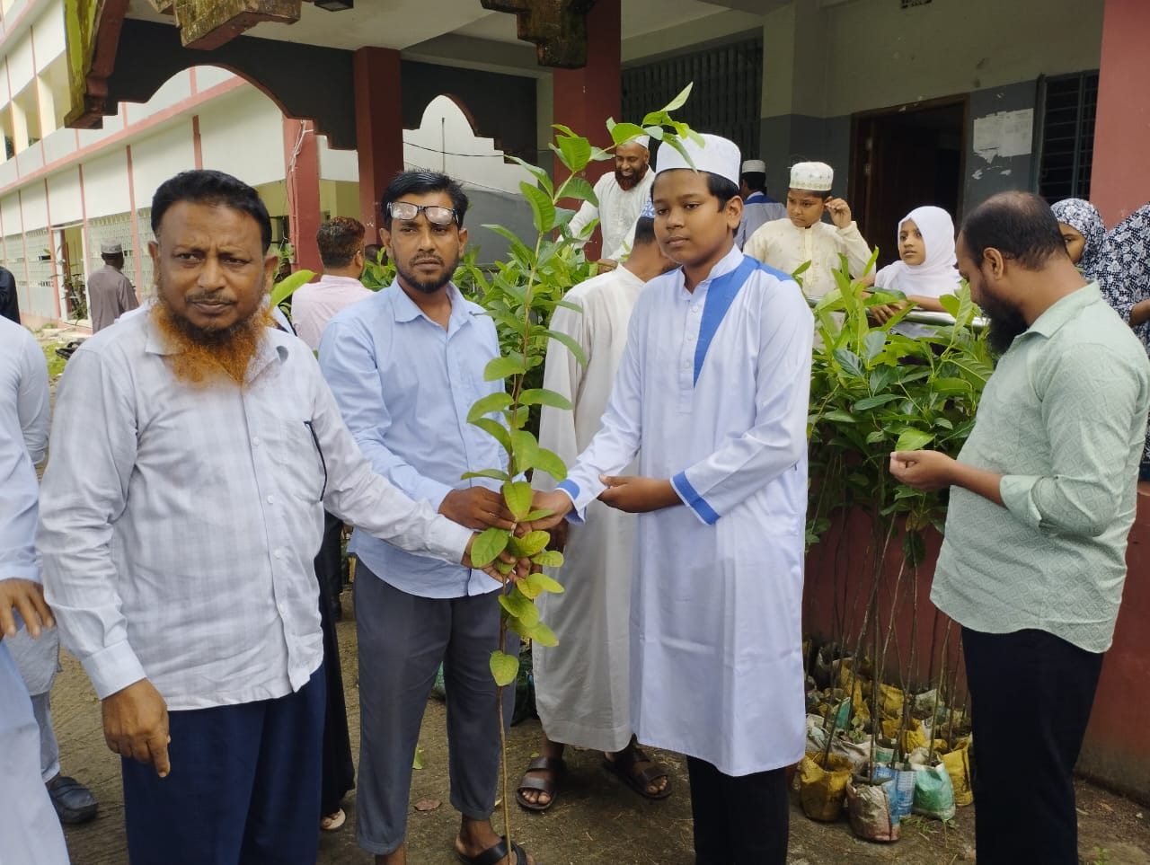 এ সময় ১ম শ্রেণি থেকে দশম শ্রেণি, ভোকেশনাল ও হিফজ শাখার শিক্ষার্থীদের হাতে এসব চারা তুলে দেওয়া হয়।