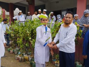 এ সময় ১ম শ্রেণি থেকে দশম শ্রেণি, ভোকেশনাল ও হিফজ শাখার শিক্ষার্থীদের হাতে এসব চারা তুলে দেওয়া হয়।