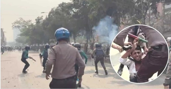 পুলিশ দুই রাউন্ড টিয়ারশেল নিক্ষেপ করার পর ঢাকা কলেজের শিক্ষার্থীরা ছত্রভঙ্গ হয়ে যায়।
