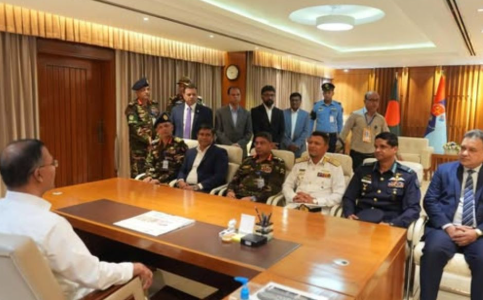 প্রধানমন্ত্রী তিনবাহিনীর প্রধানগণের সঙ্গে শুভেচ্ছা বিনিময় করেন।