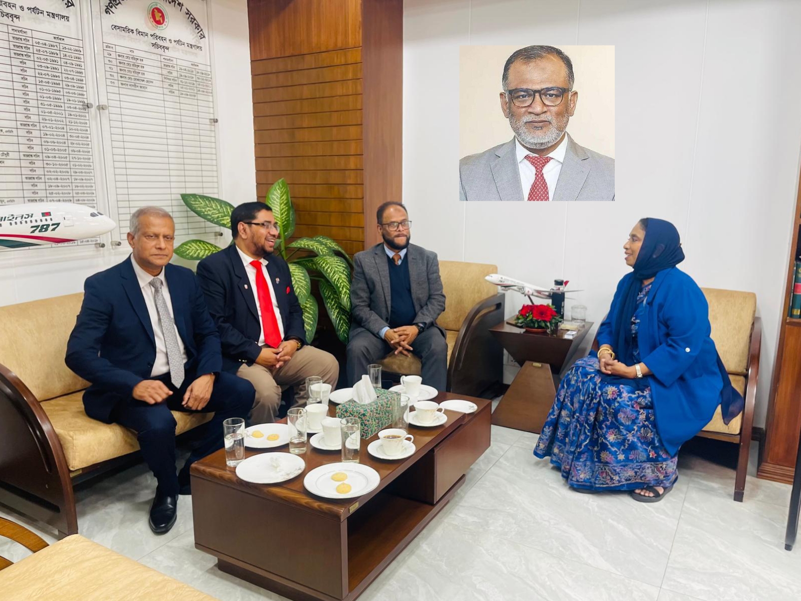 ১৩ জানুয়ারি, ২০২৬, মঙ্গলাবার যুক্তরাজ্যের বৃটিশ বাংলাদেশি কমিউনিটির পক্ষ থেকে কমিউনিটির সুপরিচিত ব্যক্তিত্ব যথাক্রমে বিশিষ্ট আইনজীবী, লেখক ও সংবিধান বিশেষজ্ঞ ব্যারিস্টার নাজির আহমদ এবং বিশিষ্ট কমিউনিটি নেতা ও জিএসসি সাবেক কেন্দ্রীয় সেক্রেটারি জেনারেল মীর্জা আসহাব বেগ বিমানের মানচেস্টার ফ্লাইট চালু রাখা ও সিলেট বিমানবন্দরকে সত্যিকার অর্থে আন্তর্জাতিক বিমানবন্দরে রূপান্তর করার দাবি জানিয়ে বেসামরিক বিমান পরিবহন ও পর্যটন মন্ত্রণালয়ের সচিব নাসরীন জাহান ও দায়িত্বপ্রাপ্ত উপদেষ্টা সেখ বশির উদ্দিনের সাথে সচিবালয়ে গতকাল পরপর পৃথক রুদ্ধদার বৈঠক করেন। তারা সংশ্লিষ্টদের কাছে তোষামোদি নয় বরং চোখে চোখ রেখে তাদের ন্যায়্য দাবি উত্থাপন করেন।