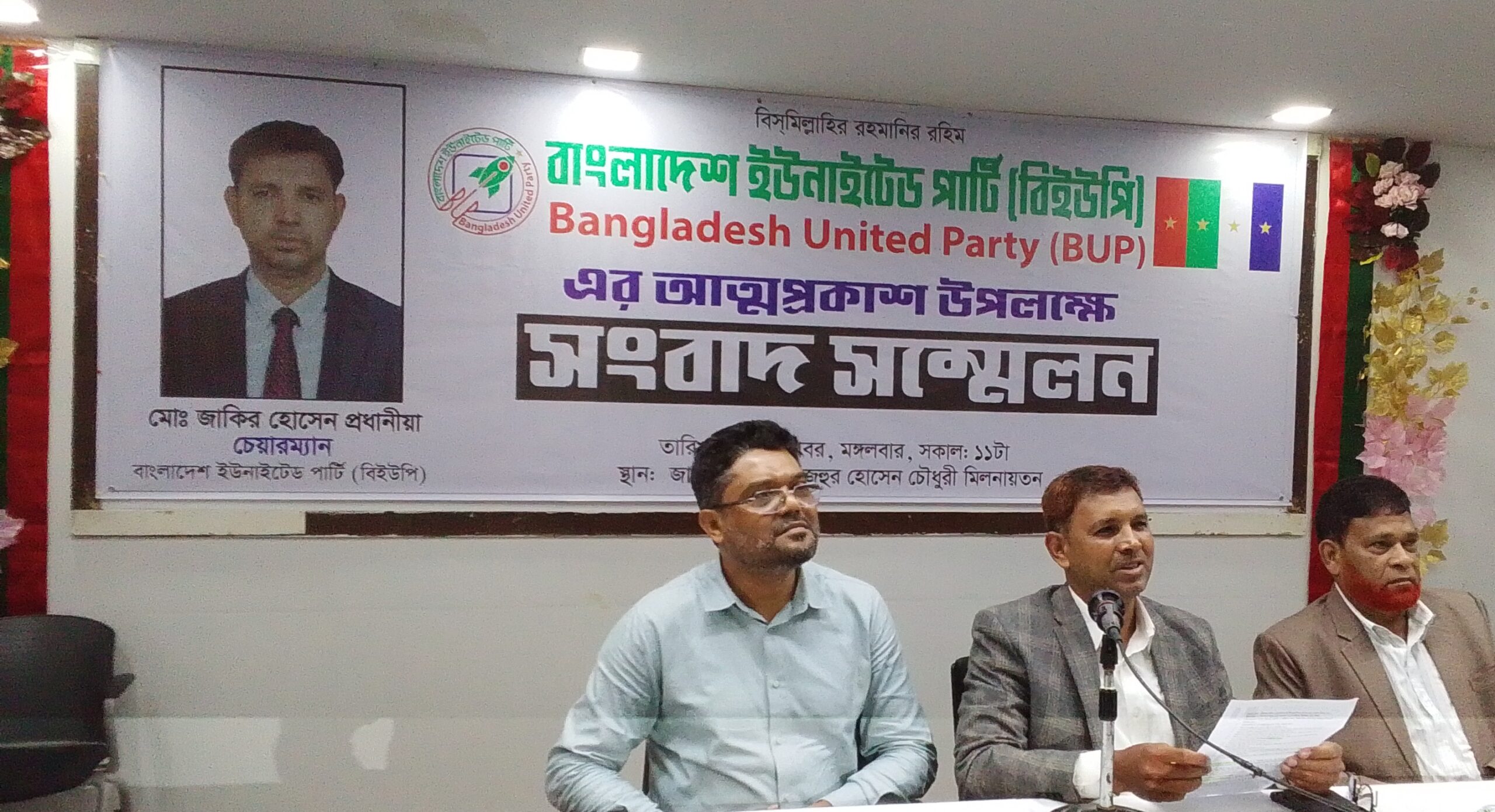 বাংলাদেশ ইউনাইটেড পার্টির চেয়ারম্যান মোঃ জাকির হোসেন প্রধানিয়া বলেন, দেশের স্বাধীনতা, সার্বভৌমত্ব এবং জাতির গৌরবজনক ইতিহাসকে সমুন্নত রাখাতে আমরা অঙ্গীকারবদ্ধ। দলের গঠনতন্ত্র, আদর্শ, কাঠামো, কার্যপ্রণালী এবং পরিচালনার রূপরেখা নির্দিষ্ট করে, যা দল পরিচালনায় একটি মৌলিক দলিল হিসেবে বিবেচিত হবে। রাজনৈতিক দলের নাম ঘোষিত বাংলাদেশ ইউনাইটেড পার্টি ইংরেজিতে Bangladesh United Party। সংক্ষেপে একে “বিইউপি” নামে অভিহিত হবে। বিইউপি একটি গণতান্ত্রিক ও অসাম্প্রদায়িক রাজনৈতিক দল।