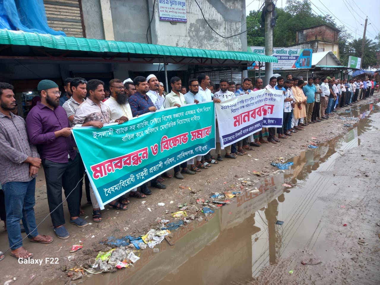 গাইবান্ধার গোবিন্দগঞ্জে অবৈধ নিয়োগ বাতিলের দাবীতে বৈষম্য বিরোধী চাকুরী প্রত্যাশী পরিষদ ও ইসলামী ব্যাংক গ্রাহক ফোরামের যৌথ উদ্যোগে ইসলামী ব্যাংক গোবিন্দগঞ্জ শাখার সামনে এক মানববন্ধন অনুষ্ঠিত হয়। মানব বন্ধনে বক্তব্যে রাখেন বৈষম্য বিরোধী আন্দোলনের নেতা মাজহারুল ইসলাম, মিল্লাত হোসেন, এনামুল হক ও গ্রাহক রেজাউল করিম প্রমুখ। মানব বন্ধনে বক্তারা বলেন, ২০১৭ থেকে ২০২৪ পর্যন্ত ব্যাংক লুটেরা ও মাফিয়া এস আলম কর্তৃক অবৈধ ভাবে নিয়োগকৃত অদক্ষ কর্মকর্তাদের অনতিবিলম্বে ছাঁটাই করতে হবে।তাছাড়া ব্যাংক সহ ব্যাংকিং সেক্টরে বিশেষ অঞ্চলের একচ্ছত্র অবৈধ নিয়োগ বাতিল করে অবিলম্বে মেধাভিত্তিক নিয়োগ প্রদান করতে হবে। বক্তারা আরো বলেন অভিযুক্ত কোন কর্মকর্তাকে ব্যাংকে প্রবেশ করতে দেয়া হবে না। সেই সাথে তাদের সকল ষড়যন্ত্র প্রতিহত করা হবে।