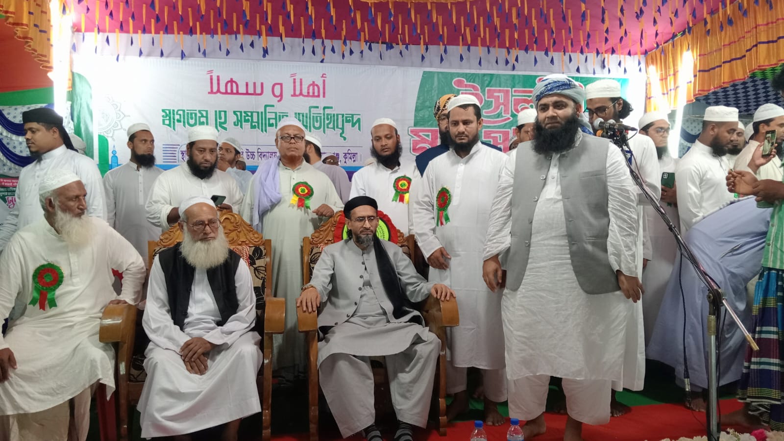 বিশেষ অতিথি হিসেবে বক্তব্য রাখেন আল্লামা মুফতি দেলোয়ার হোসেন, মুফতি সাখাওত হোসেন রাজী, মাওলানা আজিজুল হক ইসলামাবাদী, মাওলানা হোসাইন আহমেদ, মাওলানা শামসুল ইসলাম জিলানী, মুফতি আমজাদ হোসেন, মাওলানা গাজী ইয়াকুব ওসমানী, মুফতি জাবের কাসেমী, মনোহরগঞ্জ উপজেলা জামায়াতের আমির হাফেজ মাওলানা নুরুন্নবী, ইসলামি আন্দোলন বাংলাদেশ মনোনীত সংসদ সদস্য পদপ্রার্থী সেলিম মাহমুদ।