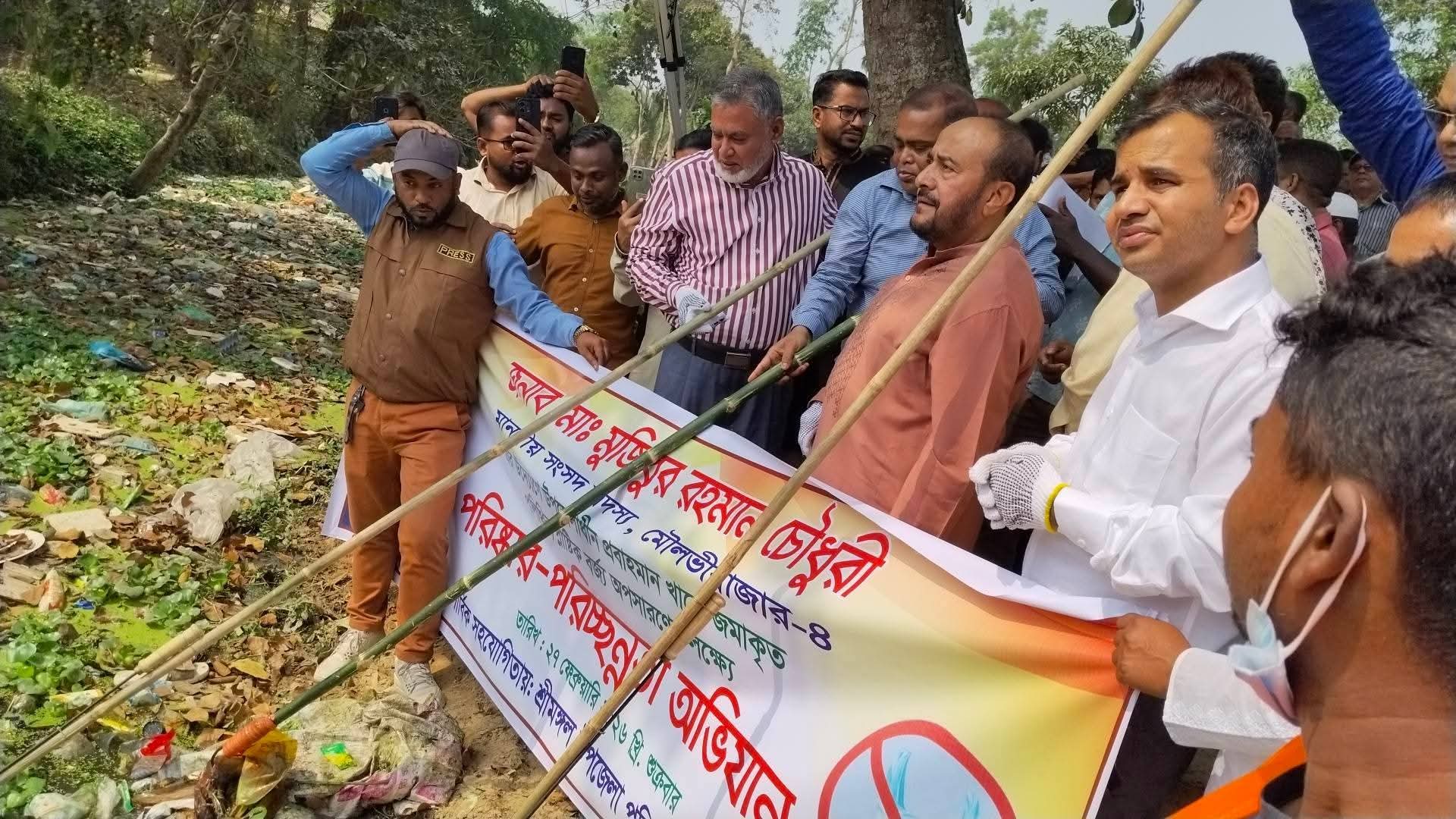 শ্রীমঙ্গলের রূপসপুর ও বালুচর সংলগ্ন জোড়া পুল এলাকায় প্রবাহমান ভুরভুরিয়া খালে জমে থাকা পলিথিন ও প্লাস্টিক বর্জ্য অপসারণে পরিষ্কার-পরিচ্ছন্নতা অভিযান শুরু হয়েছে।