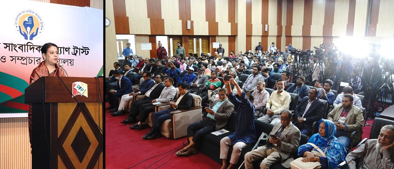 সোমবার রাজধানীর সার্কিট হাউজ রোডে তথ্য ভবনের সম্মেলন কক্ষে বাংলাদেশ সাংবাদিক কল্যাণ ট্রাস্ট থেকে ২০২৫-২৬ অর্থবছরের দ্বিতীয় পর্যায়ের আর্থিক সহায়তার অনুদানের চেক বিতরণ অনুষ্ঠানে প্রধান অতিথির বক্তব্যে তিনি এসব কথা বলেন।