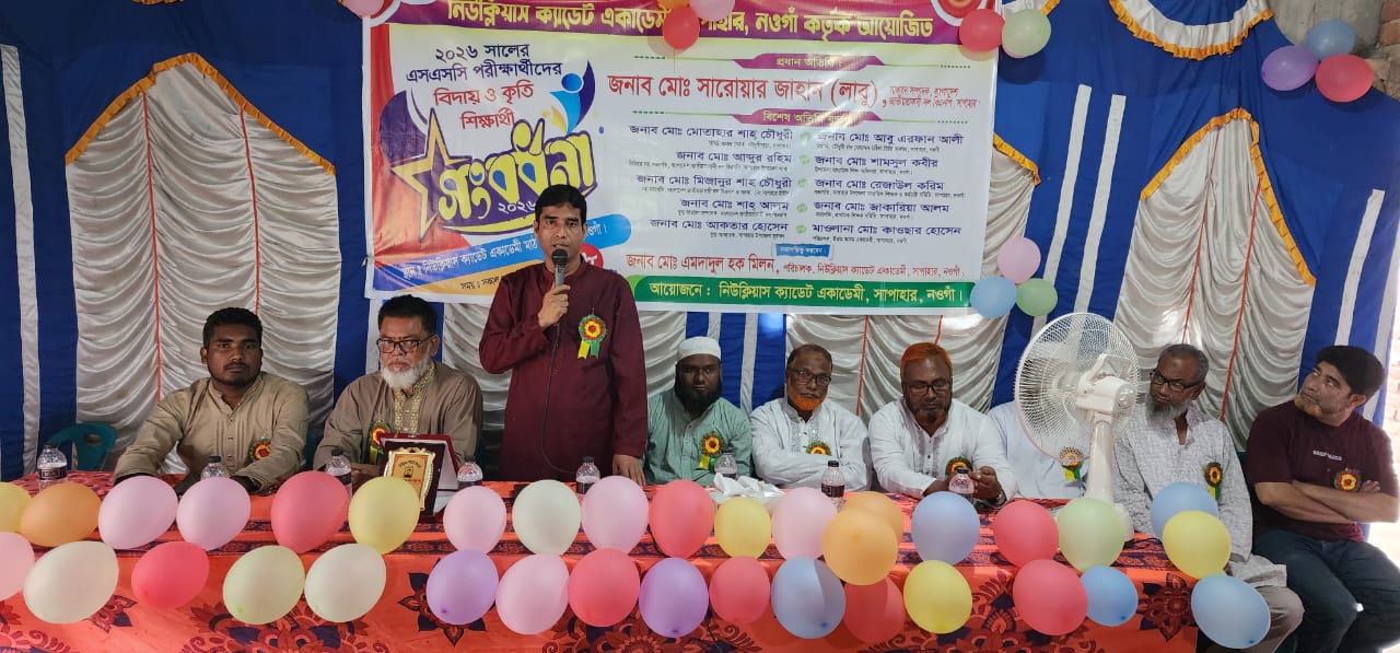 নওগাঁর সাপাহারে নিউক্লিয়াস ক্যাডেট একাডেমি কর্তৃক ২০২৬ সালের এসএসসি পরীক্ষার্থীদের বিদায় ও কৃতি শিক্ষার্থীদের সংবর্ধনা প্রদান করা হয়েছে।