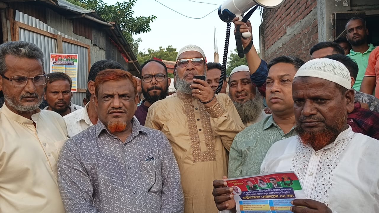 সাপাহারে ডাঃ সালেক চৌধুরীর পক্ষে গণসংযোগ ও লিফলেট বিতরণ