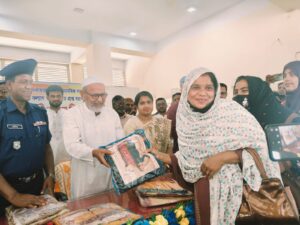 এ সময় সাপাহার উপজেলার ৬ টি ইউনিয়নের ৩৯৫ জন উপকারভোগীর মাঝে শাড়ি ২০০ পিস, থ্রি-পিস ৩০ পিস, নগদ অর্থ ১৫০ জনের মধ্যে (জনপ্রতি ২০০০ টাকা করে মোট ৩ লক্ষ), হাজী রুমাল ১৫ পিস বিতরণ করা হয়।