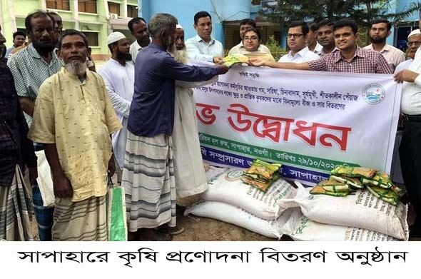 চলতি অর্থবছরের রবি মৌসুমে প্রণোদনা কর্মসূচির আওতায় বুধবার সকাল ১০টায় সাপাহার উপজেলা পরিষদ চত্বরে এ প্রণোদনা বিতরণের উদ্বোধন করা হয়। অনুষ্ঠানে উপজেলা নির্বাহী অফিসার সেলিম আহমেদ প্রধান অতিথি হিসেবে উপস্থিত থেকে আনুষ্ঠানিকভাবে প্রণোদনা কর্মসূচির উদ্বোধন করেন।
