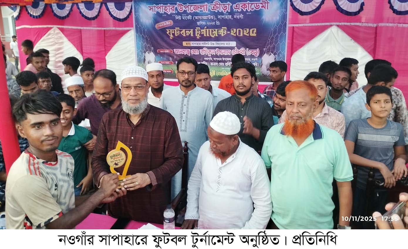 স্টাফ রিপোর্টার: নওগাঁর সাপাহারে ফুটবল টুর্নামেন্ট অনুষ্ঠিত হয়েছে।