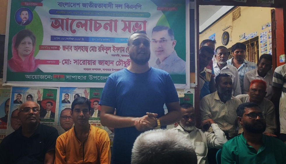সাপাহার উপজেলা বিএনপির আয়োজনে শারদীয় দুর্গা পুজা ও রাজশাহী বিশ্ববিদ্যলয় (রাকসূ) নির্বাচন উপলক্ষে আলোচনা সভা অনুষ্ঠিত হয়েছে।