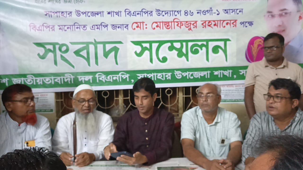 মঙ্গলবার বিকেল সাড়ে ৪টায় সাপাহার উপজেলা বিএনপির উদ্যোগে ও সাধারণ সম্পাদক সারোয়ার জাহান চৌধুরী (লাবু)-এর নেতৃত্বে উপজেলা সদরের মেডিকেল মোড় থেকে এক প্রতিবাদ মিছিল বের করা হয়। মিছিলটি উপজেলা সদরের প্রধান প্রধান সড়ক প্রদক্ষিণ শেষে দলীয় কার্যালয়ের সামনে এসে সমাবেশে মিলিত হয়। পরে দলীয় কার্যালয়ে এক সংবাদ সম্মেলন অনুষ্ঠিত হয়।