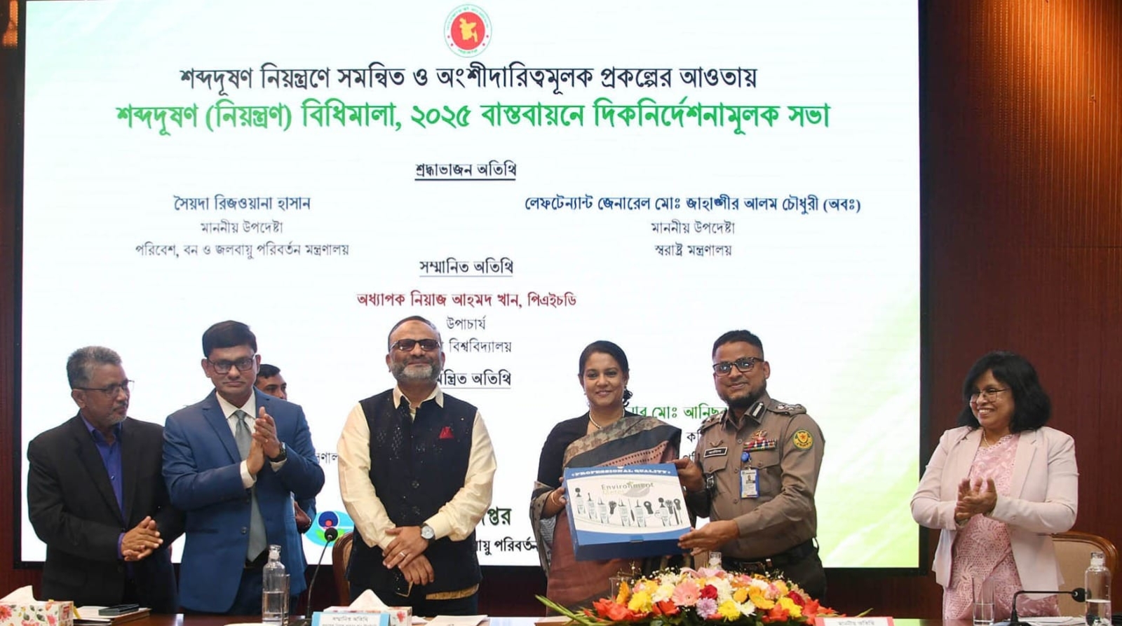 ১৪ ডিসেম্বর পরিবেশ অধিদপ্তরে আয়োজিত শব্দদূষণ (নিয়ন্ত্রণ) বিধিমালা, ২০২৫ অনুযায়ী বাংলাদেশ পুলিশকে আইনপ্রয়োগের ক্ষমতা প্রদানসহ বিভিন্ন অংশীজনকে সম্পৃক্ত করার লক্ষ্যে আয়োজিত নির্দেশনামূলক সভায় উপদেষ্টা এসব কথা বলেন।