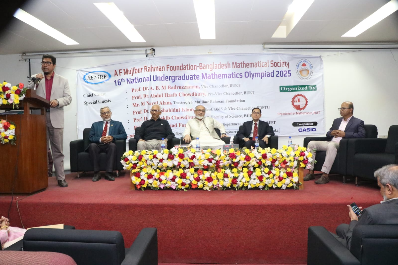 ‎গণিতের প্রতি আগ্রহ ও জনপ্রিয়তা সৃষ্টি, গণিত ভীতি দূর করা সর্বোপরি গণিতের উৎকর্ষ সাধনের নিমিত্তে, গণিত সমিতি ২০০৯ সাল থেকে দেশ ব্যাপী স্নাতক পর্যায়ে গণিত অলিম্পিয়াড নিয়মিতভাবে আয়োজন করে আসছে, যেখানে অংশগ্রহণকারীগণ পাণিতিক দক্ষতা ও বিশ্লেষণের পারঙ্গমতা প্রদর্শনের সুযোগ পাচ্ছে বলে ইতিমধ্যে জাতীয়ভাবে ব্যাপক সাড়া পড়েছে। এই বাস্তবতায় দেশের আনাচে কানাচে ছড়িয়ে ছিটিয়ে থাকা সুস্ত মেধা-বিকাশের সুযোগ করে দেয়ার লক্ষ্যে, বাংলাদেশ গণিত সমিতি দেশের বিভিন্ন অঞ্চলে আঞ্চলিক অলিম্পিয়াডের আয়োজন করছে। এ. এফ, মুজিবুর রহমান ফাউন্ডেশনের অর্থানুকুলো, এ বছর ১৬তম জাতীয় স্নাতক গণিত অলিম্পিয়াড ২০২৫ চূড়ান্ত পর্ব, অদ্য ১৬/০১/২০২৬ইং তারিখে বুয়েটের গণিত বিভাগে আয়োজন করা হয়েছে।