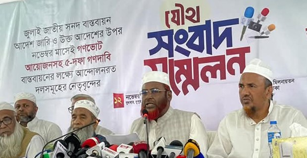 সংবাদ সম্মেলনে আরও ছিলেন—জামায়াতের সেক্রেটারি জেনারেল অধ্যাপক মিয়া গোলাম পরওয়ার, ইসলামী আন্দোলন বাংলাদেশের মহাসচিব ইউনুস আহমাদ, জামায়াতের সহকারী সেক্রেটারি জেনারেল রফিকুল ইসলাম খান, এহসানুল মাহবুব জুবায়ের, ইসলামী আন্দোলনের প্রেসিডিয়াম সদস্য আশরাফ আলী আকন ও জাগপার সহসভাপতি রাশেদ প্রধানসহ ৮ দলের শীর্ষ নেতারা।