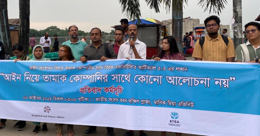 সরকারের পক্ষ থেকে তামাক নিয়ন্ত্রণ আইনটি সংশোধনের মাধ্যমে অধিকতর শক্তিশালী করার যে উদ্যোগ গ্রহণ করা হয়েছে তা অত্যন্ত প্রশংসার দাবীদার। কিন্তু তামাক কোম্পানিগুলো সরকারের জনস্বাস্থ্য রক্ষার এই মহান উদ্যোগকে ব্যাহত করতে মরিয়া হয়ে উঠেছে। তারা নিজেদের অংশীজন দাবী করে আইন সংশোধনে মতামত দিতে চাইছে যা সুস্পষ্টভাবে এফসিটিসি আর্টিকেল ৫.৩ এর লঙ্ঘন। এই বিষয়ের উপর গুরুত্ব দিয়ে আজ বাংলাদেশ টোব্যাকো কন্ট্রোল এডভোকেডস (BTCA) ও বাংলাদেশ তামাক বিরোধী জোট (BATA) এর যৌথ উদ্যোগে একটি প্রতিবাদ কর্মসূচি ও ভ্রাম্যমান ক্যাম্পেইনের আয়োজন করা হয়। উক্ত প্রতিবাদ কর্মসূচি ও ভ্রাম্যমান ক্যাম্পেইনের মাধ্যমে তামাক নিয়ন্ত্রণ বিষয়ক আইন, বিধিমালা বা নীতি প্রণয়নে তামাক কোম্পানি বা তাদের সহযোগীদের মতামত গ্রহণ না করাসহ ‘সব নীতিতে স্বাস্থ্যকে প্রাধান্য’ (Health in All Policies) বাস্তবায়নে আন্তঃমন্ত্রণালয় সমন্বয় জোরদার করার দাবি তুলে ধরা হয়। একইসাথে তামাক নিয়ন্ত্রণ আইন দ্রুত সংশোধনের মাধ্যমে শক্তিশালী করার আহ্বান জানানো হয়।