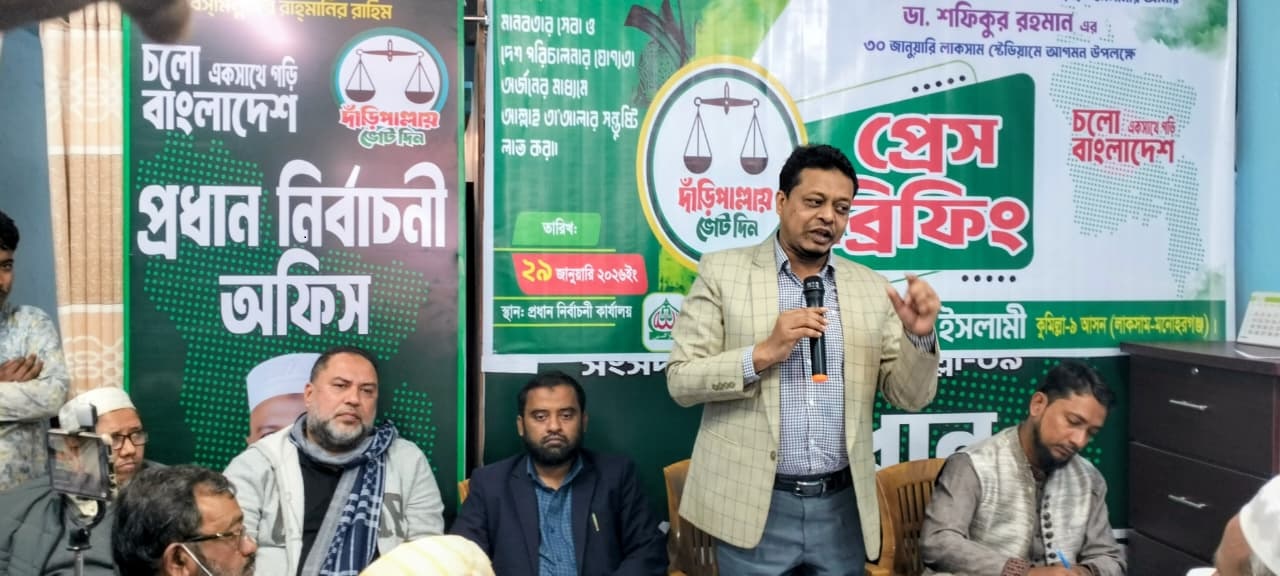 কুমিল্লা-৯ (লাকসাম-মনোহরগঞ্জ) আসনে দাঁড়িপাল্লার প্রধান নির্বাচন পরিচালক ও লাকসাম পৌরসভা জামায়াতের আমীর মু. জয়নাল আবেদীন পাটোয়ারীর সভাপতিত্বে প্রেস ব্রিফিংয়ে বক্তব্য রাখেন, নির্বাচনী জনসভা বাস্তবায়ন সমন্বয়ক, কুমিল্লা নারী ও শিশু নির্যাতন দমন ট্রাইব্যুনালের পিপি অ্যাডভোকেট বদিউল আলম সুজন। এ সময় উপস্থিত ছিলেন, উপজেলা জামায়াতের সেক্রেটারি জুবায়ের ফয়সাল, কুমিল্লা দক্ষিণ জেলা শ্রমিক কল্যাণ ফেডারেশনের সেক্রেটারি সাহাবুদ্দিন হায়দার, লাকসাম পৌরসভা শ্রমিক কল্যাণ ফেডারেশনের সভাপতি মাষ্টার শাহ আলম।